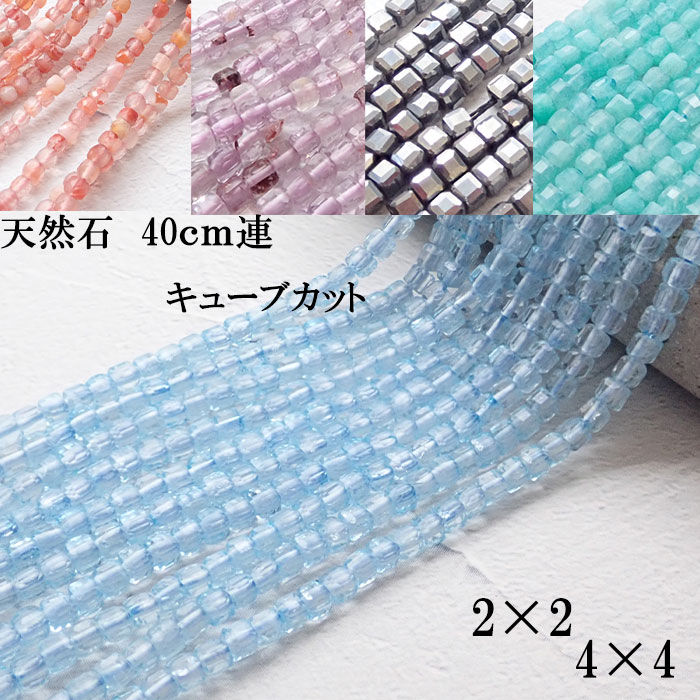 【約40cm ビーズ 連 】キューブカット スクエア 2*2mm 4*4mm 1本 天然石 パワーストーンハンドメイド