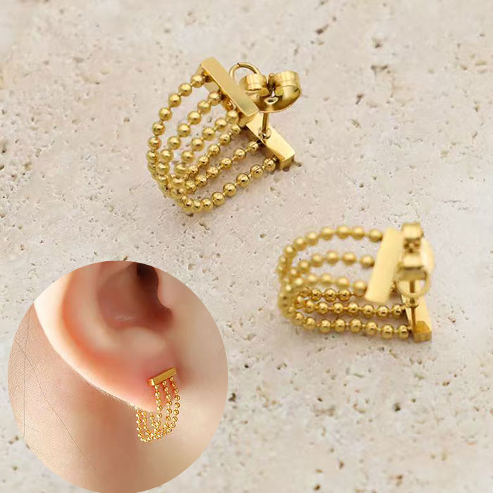 ステンレスピアス 金属アレルギー対応 チェーンフープ ピアス レディース スタッドピアス ゴールド