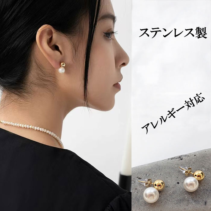 金属アレルギー対応 10mm パール ピアス レディース スタッドピアス ゴールド 卒業式 入学式