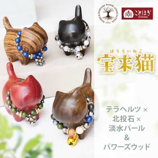 ことほぎ KOTOHOGI テラヘルツ 北投石 淡水パール パワーズウッド 宝来猫 置き物 木製 ネコ 雑貨 インテリア ヒーリング 厄除け 2512006