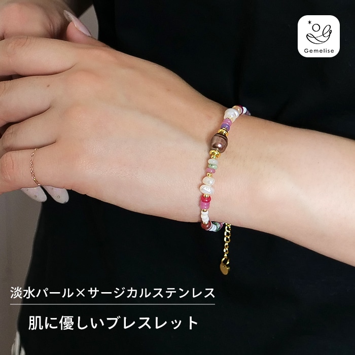 Gemelise ジェメリース 淡水パール×天然石(アベンチュリン/アゲート/シェル)ブレスレット 750299