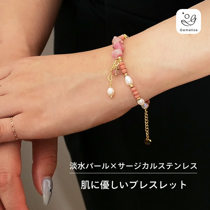 Gemelise ジェメリース 淡水パール×天然石(バロック・ベビー/ストロベリークォーツ)ブレスレット 750304