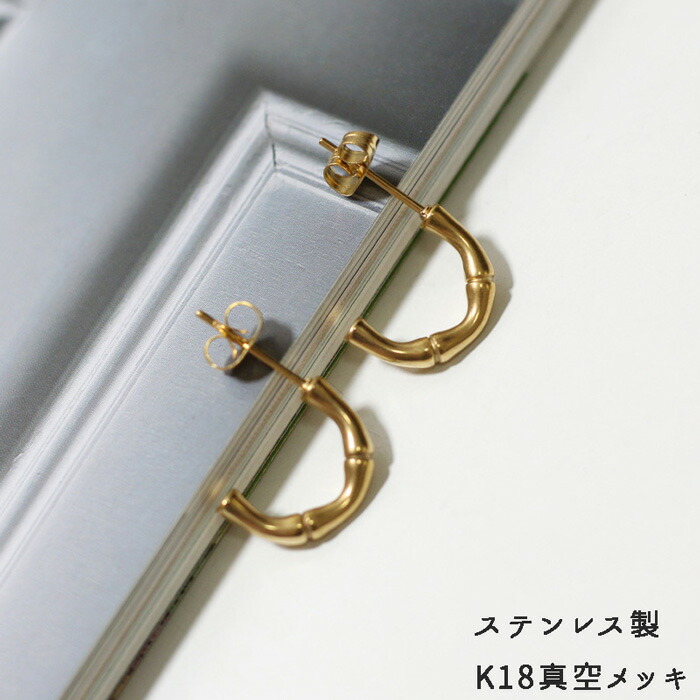 金属アレルギー対応 ステンレスピアス 【164. オーガニック フープ ゴールド ピアス】 スタッド メール便送料無料 国内発送