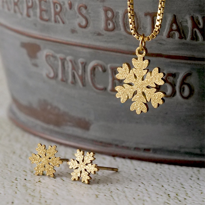【金属アレルギー対応】 01.ステンレス セット ネックレス ピアス 雪の結晶 ゴールド 国内発送【メール便送料無料】