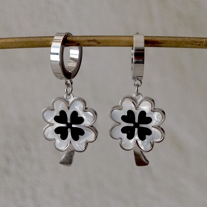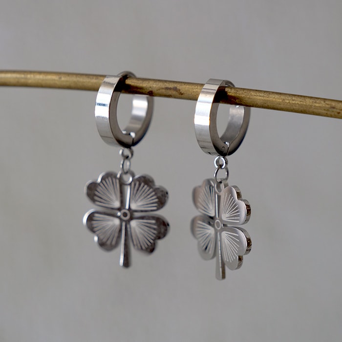 【金属アレルギー対応】 134-S. メタル クローバー シルバー フープピアス 1ペア 国内発送 ステンレス【メール便送料無料】