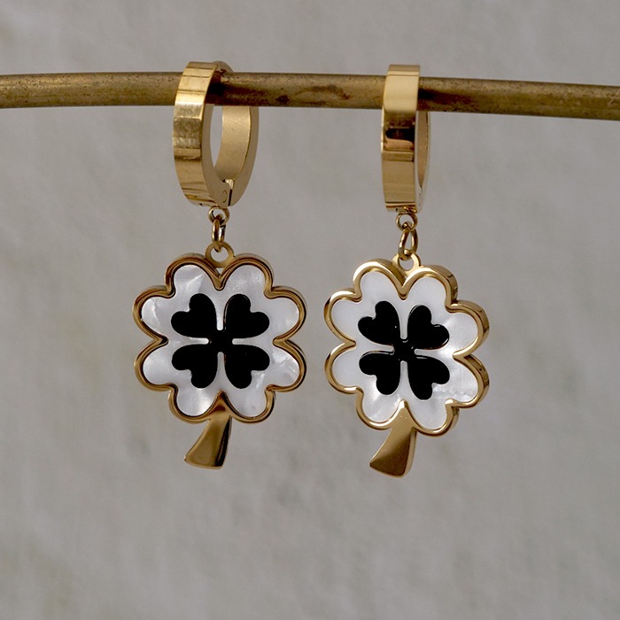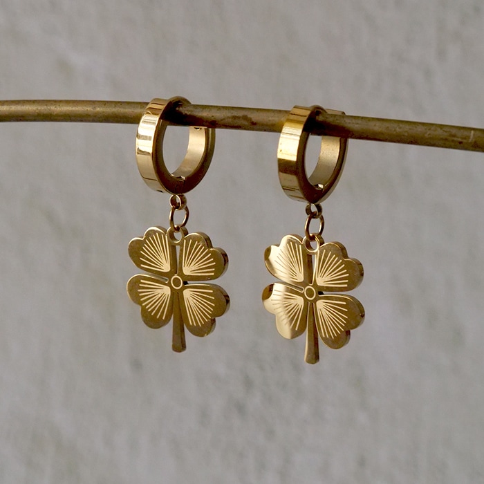 【金属アレルギー対応】 134-G. メタル クローバー ゴールド フープピアス 1ペア 国内発送 ステンレス【メール便送料無料】