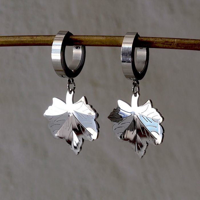 【金属アレルギー対応】 133-S. メープルリーフ シルバー フープピアス 1ペア 国内発送 ステンレス【メール便送料無料】