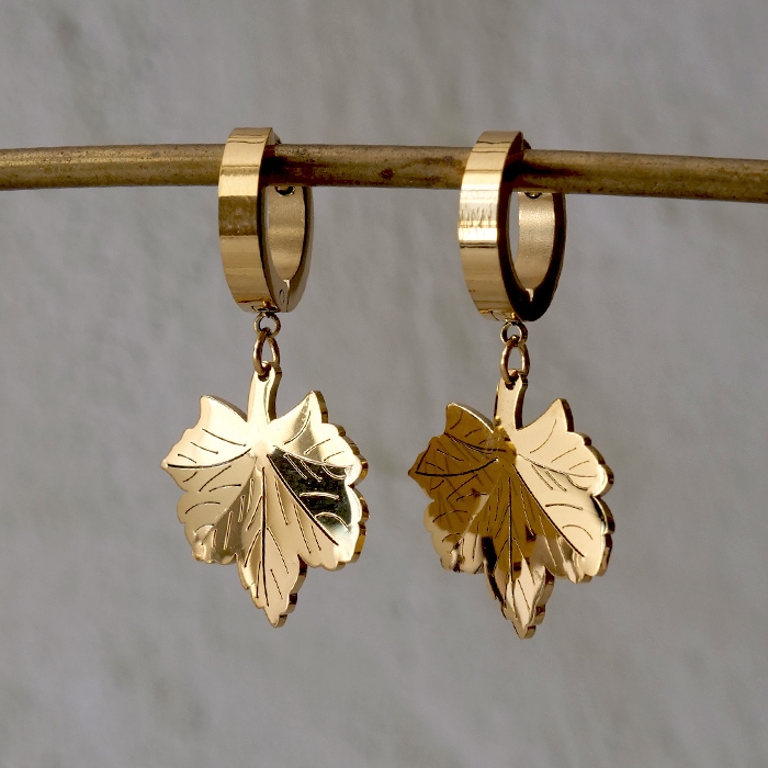 【金属アレルギー対応】 133-G. メープルリーフ ゴールド フープピアス 1ペア 国内発送 ステンレス【メール便送料無料】