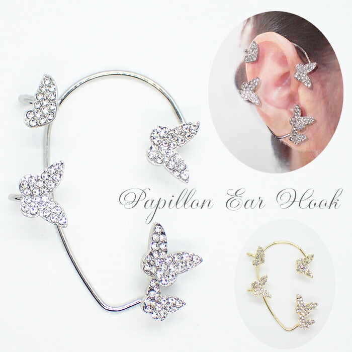 アクセサリー イヤーフック【03 ファイブ パピヨン シルバー / ゴールド / 右耳用 / 左耳用】1個 ラインストーン イヤーカフ 韓国 DIY 国内発送