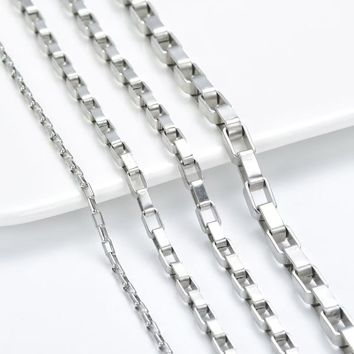 ステンレス製 ボックスチェーン 切り売り スクエアチェーン 幅2mm~6mm 金属アレルギー対応