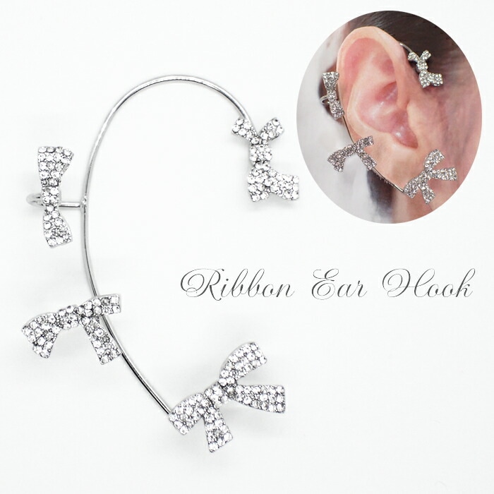 アクセサリー イヤーフック【01 リボン シルバー 右耳用】1個 ラインストーン イヤーカフ 韓国 DIY 国内発送