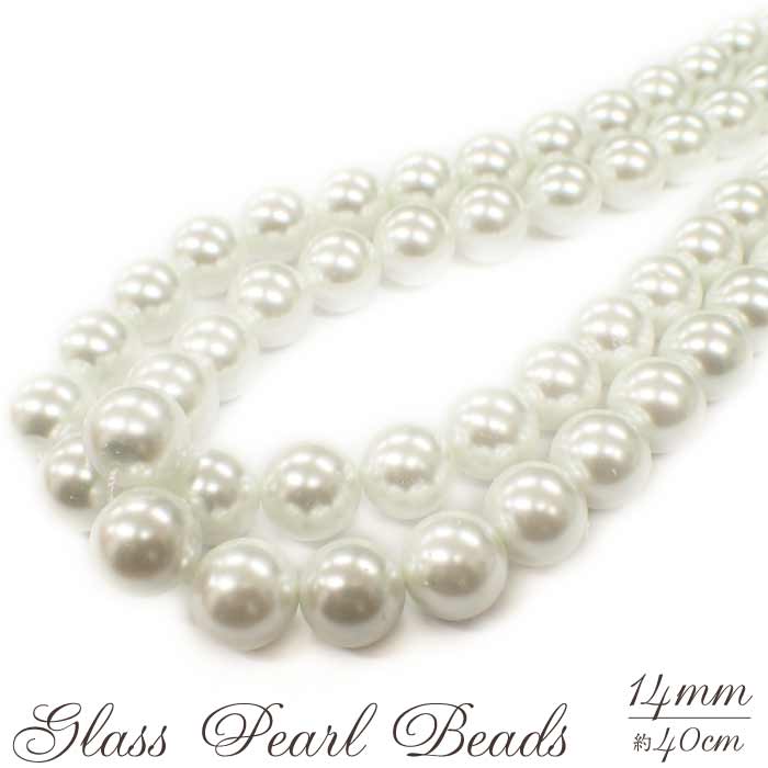 ガラス製パールビーズ 14mm 【1連約40cm】 ガラスパール グラスパール パーツ ハンドメイド フェイクパール イミテーション ホワイト 白 チャーム ピアス ネックレス DIY 国内発送