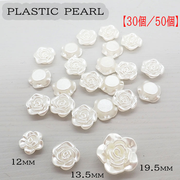 樹脂パールビーズ ローズ ボタン型 キスカ 12mm 13mm 19mm【30個/50個】 薔薇 プラパール ホワイト