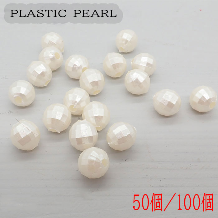樹脂パールビーズ ミラーカット キスカ 6mm 8mm 10mm【50個/100個】 プラパール ホワイト ハンドメイド