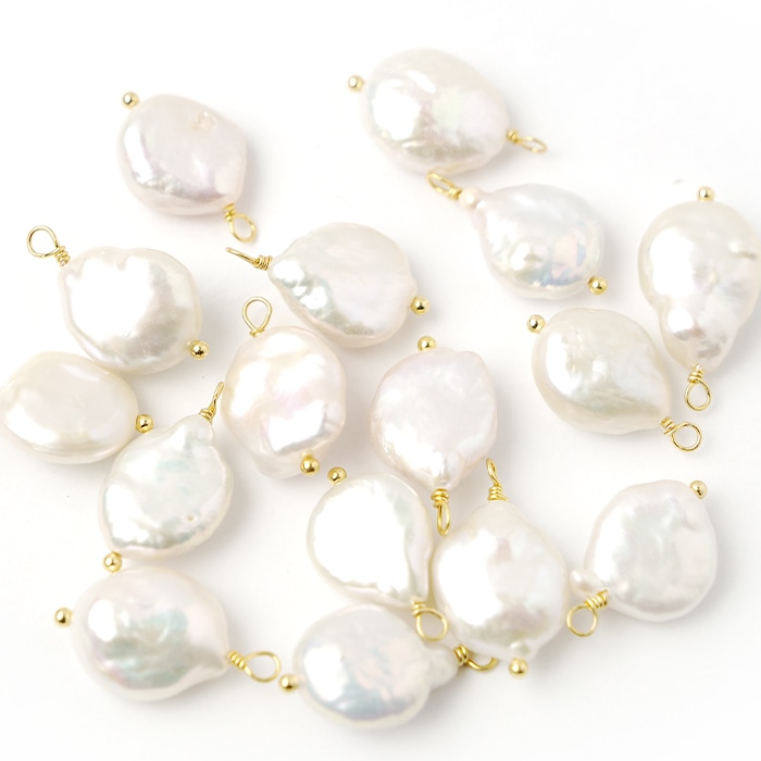【天然 淡水パール】 K14GF ワイヤーチャーム 1個売り12*17mm ホワイト 大粒 真珠 天然素材