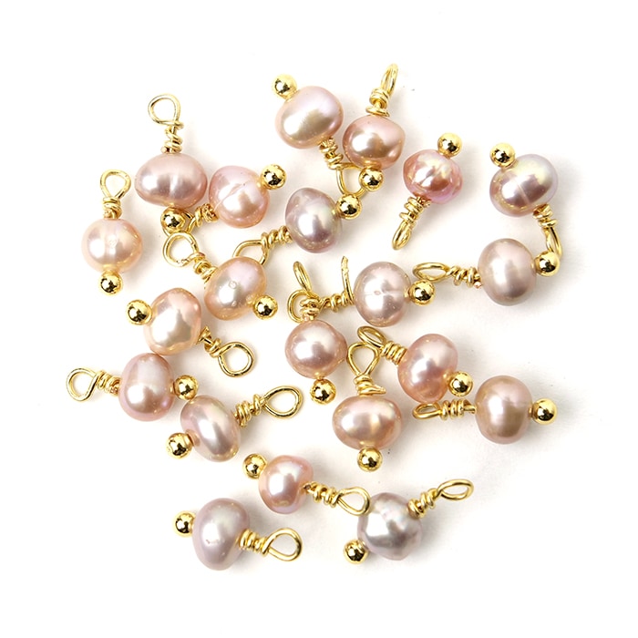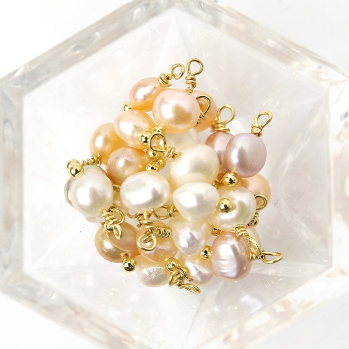 【天然 淡水パール】 K14GF ワイヤーチャーム 1個売り 淡水パール6mm ミックス 真珠 天然素材 ハンドメイド