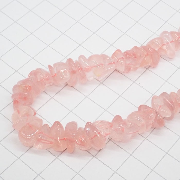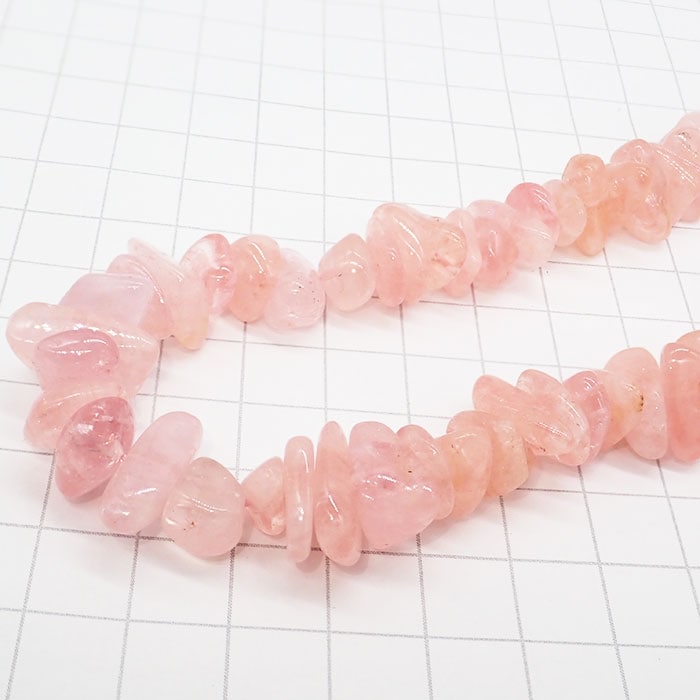 天然石グァバクォーツさざれ連 約40cm 7×10mm ピンククォーツ チップビーズ ハンドメイド