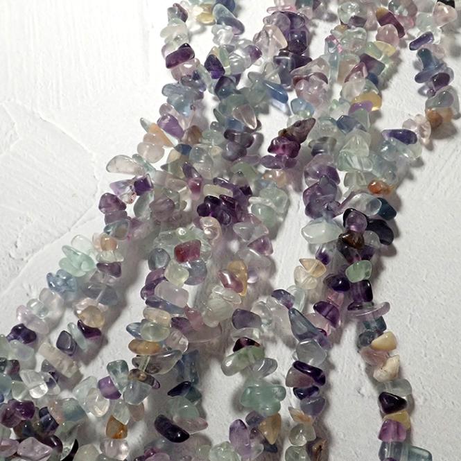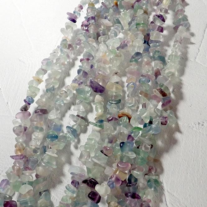 【約80cm連 フローライト(淡色)】 さざれ ビーズ 約3*5mm 1本 パワーストーン 穴あり 天然石 国内発送