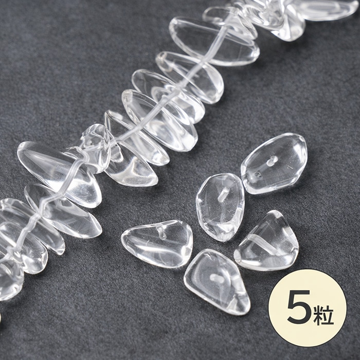 天然水晶 チップビーズ 5粒セット 約15-20mm×4-8mm クリアクォーツ 穴あき さざれ 大粒【5*12】