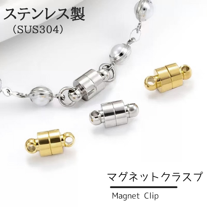 ステンレス SUS304【 マグネットクラスプ 2色】ゴールド シルバー 磁石 1個 金属アレルギー対応 留め具