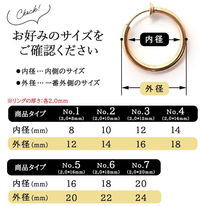 ・サイズ:内径約8mm~20mm