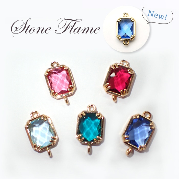 ストーンフレーム 【41.スクエア】 長方形 ガラス チャーム コネクター 両カン 上下カン 【全長約16mm 丸カンつき パーツ 】 ハンドメイド 手作り DIY 国内発送