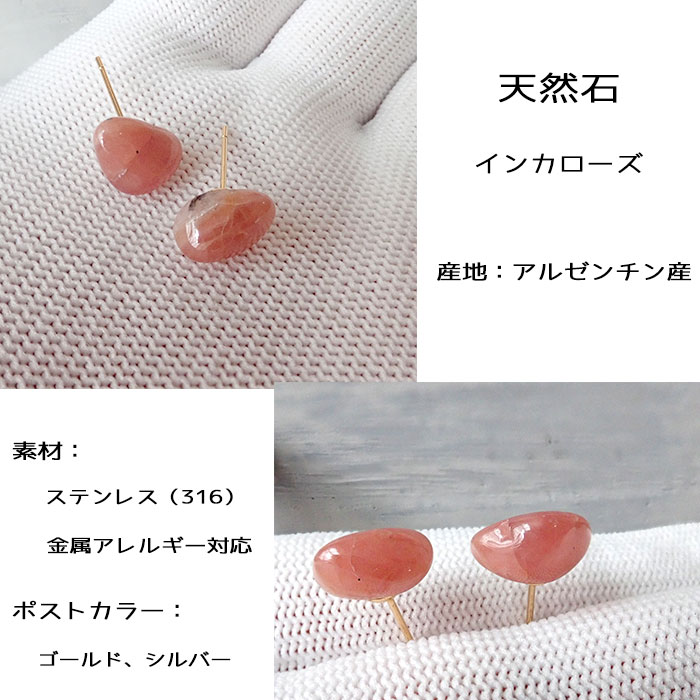 【メール便送料無料】 【日本製】ピアス (21.インカローズ)アルゼンチン産 ペア(G、SV) ステンレス製 金属アレルギー対応