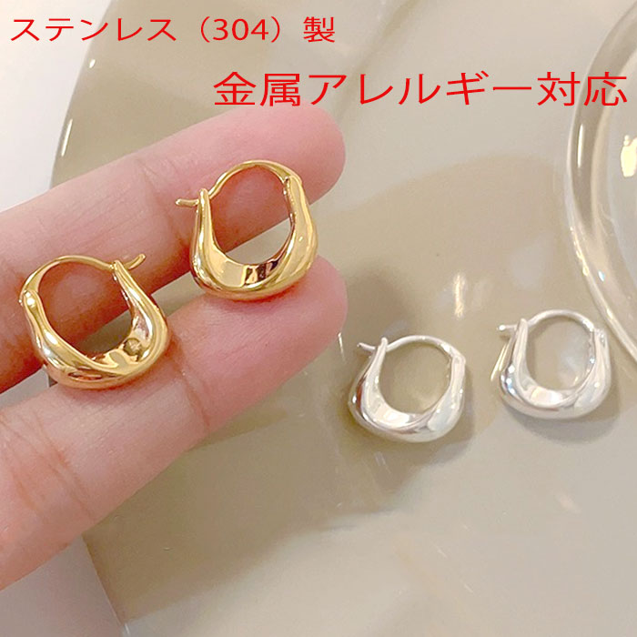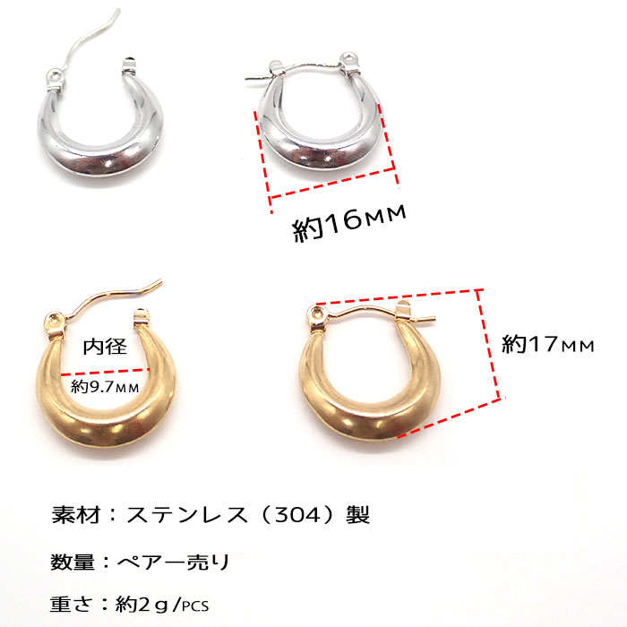 【メール便送料無料】 金属アレルギー対応 125. フープピアス(U字)約16×17mm 1ペア ゴールド シルバーステンレス(SUS304)