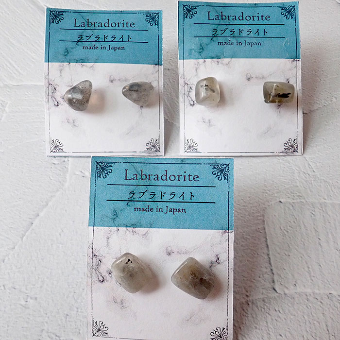 【メール便送料無料】 【日本製】ピアス (38.ラブラドライト)マダガスカル産 ペア (シルバー)ステンレス製 金属アレルギー対応