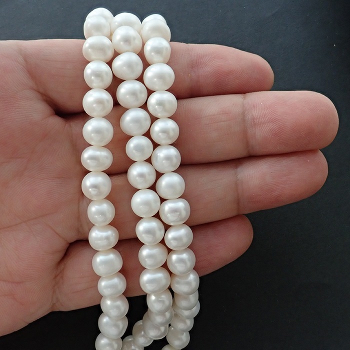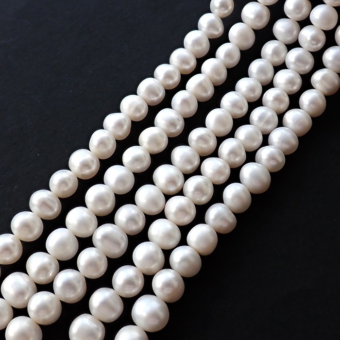 優雅な魅力を持つ【215. 淡水パール ポテト 連】をご紹介します。約8*6mmのサイズ感で、ホワイトとピンクの美しい淡水真珠が1本(約40cm)に連なっています。どんなスタイルにも調和するこのネックレスは、あなたのセンスを引き立てるアイテムです。