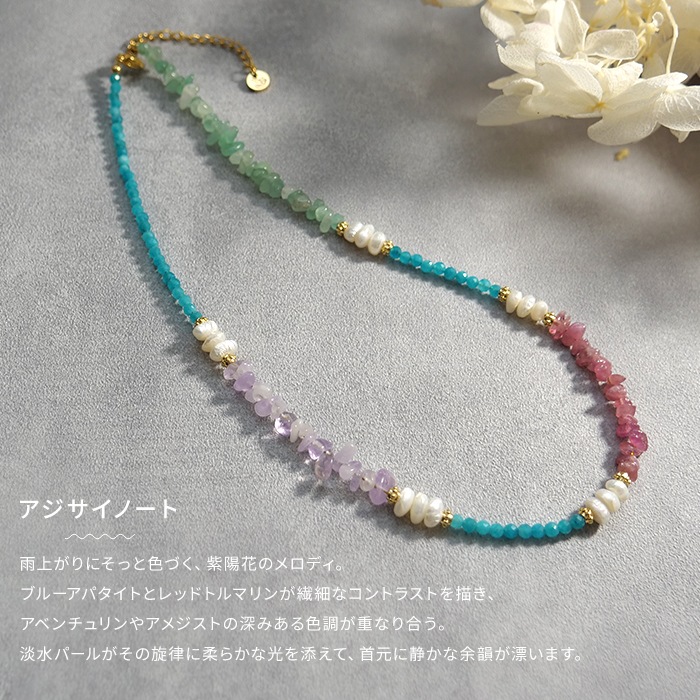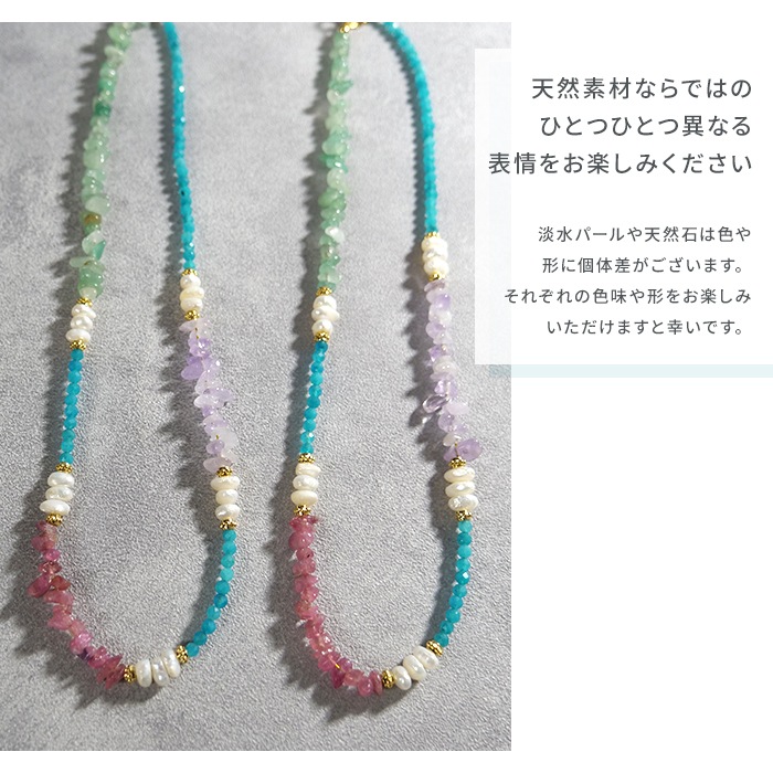 淡水パール・ブルーアパタイト・レッドトルマリン・アベンチュリン・アメジスト