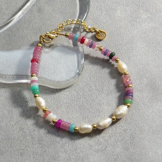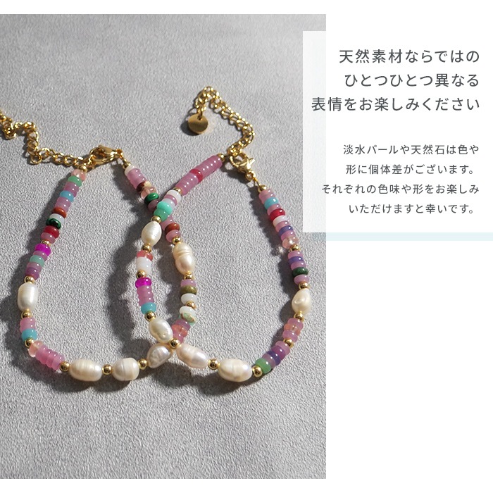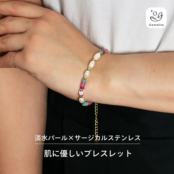 - 淡水パールの優しい輝きとマルチカラーのカラフルなめのうが、手元にさりげない上品さと楽しさをプラスします。