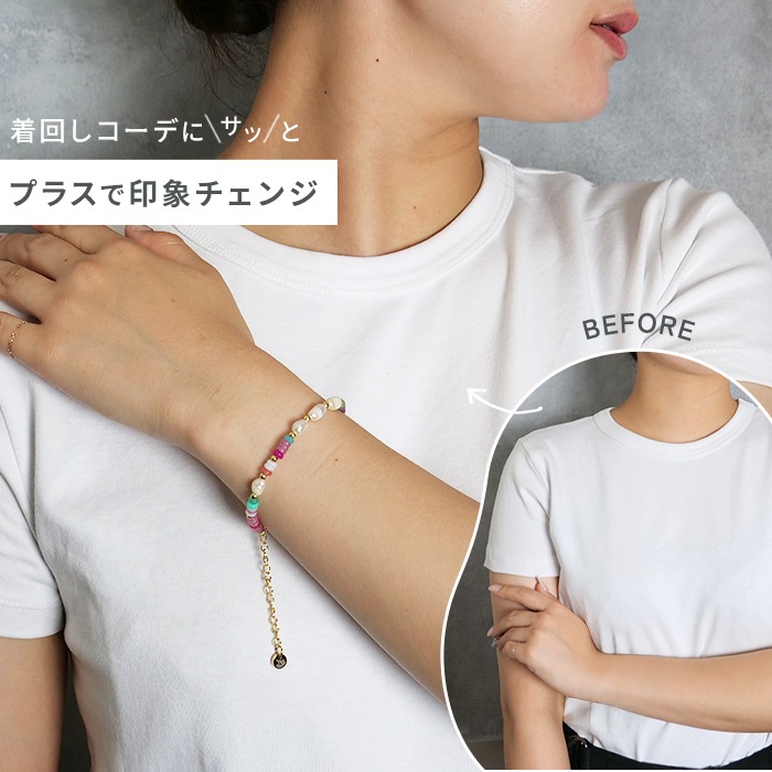 シンプルすぎず、派手すぎない、そんな気分にぴったりのブレスレットです。