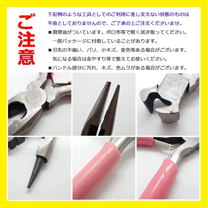 ■刃先の不揃い、バリ、小キズ、変色等ある場合がございます。気になる場合は金やすり等で整えてお使いください。