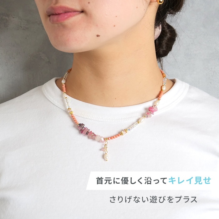 淡水パール・ピンクオパール・めのう・ガラスビーズ