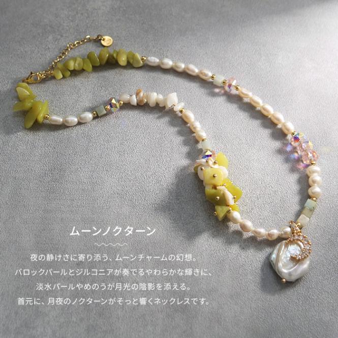 バロックパール・淡水パール・シェル・めのう・ガラスビーズ・キュービックジルコニアムーンチャーム