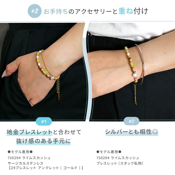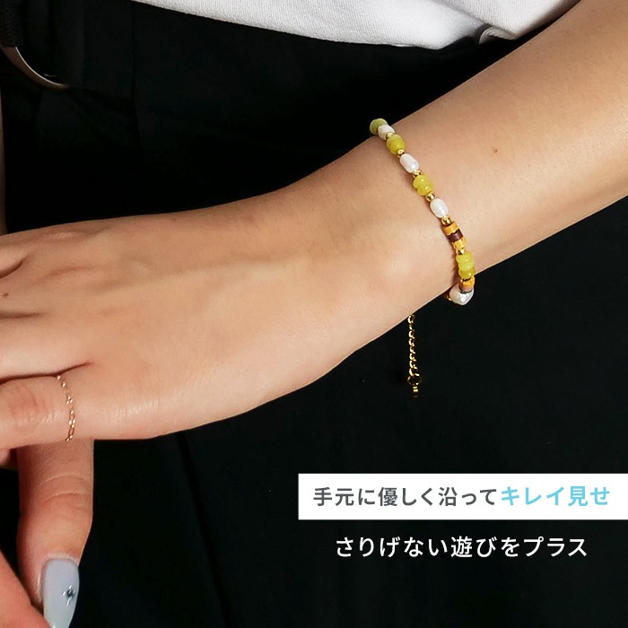 シンプルすぎず、派手すぎない、そんな気分にぴったりのブレスレットです。