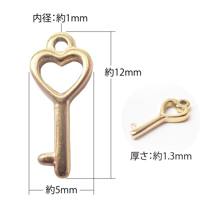ステンレス 【SUS304】 チャーム 鍵 ハート ゴールド ハンドメイド パーツ キー 金属アレルギー対応