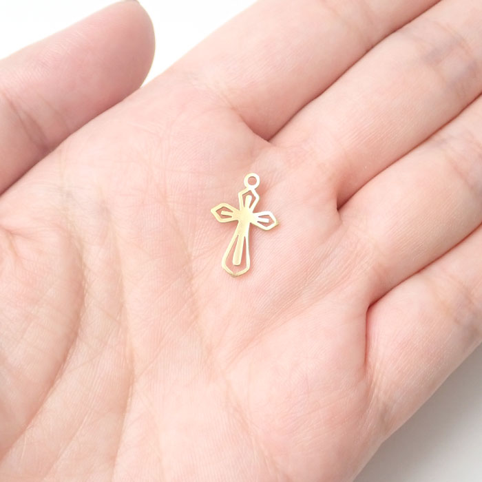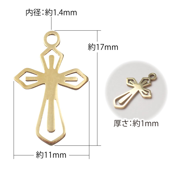 クロス チャーム ステンレス製 約17mm ゴールド 金属アレルギー対応 アクセサリーパーツ