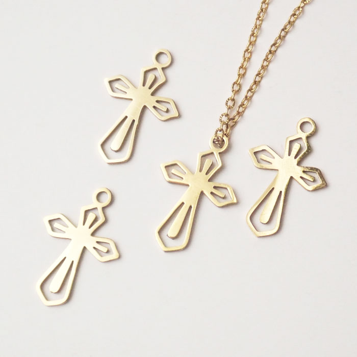 十字モチーフはファッションのアクセントとして人気が高く、ペンダントトップやブレスレットのチャーム、ピアスなど幅広い用途に活用可能です。