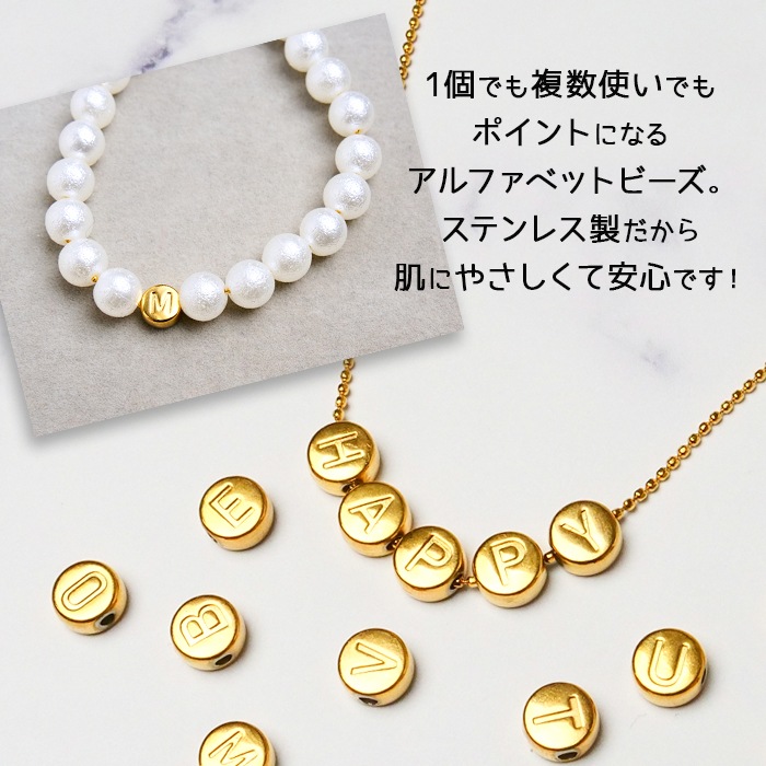 ◆ステンレス製 アルファベットビーズ【ゴールド O~Z 】はこちら◆