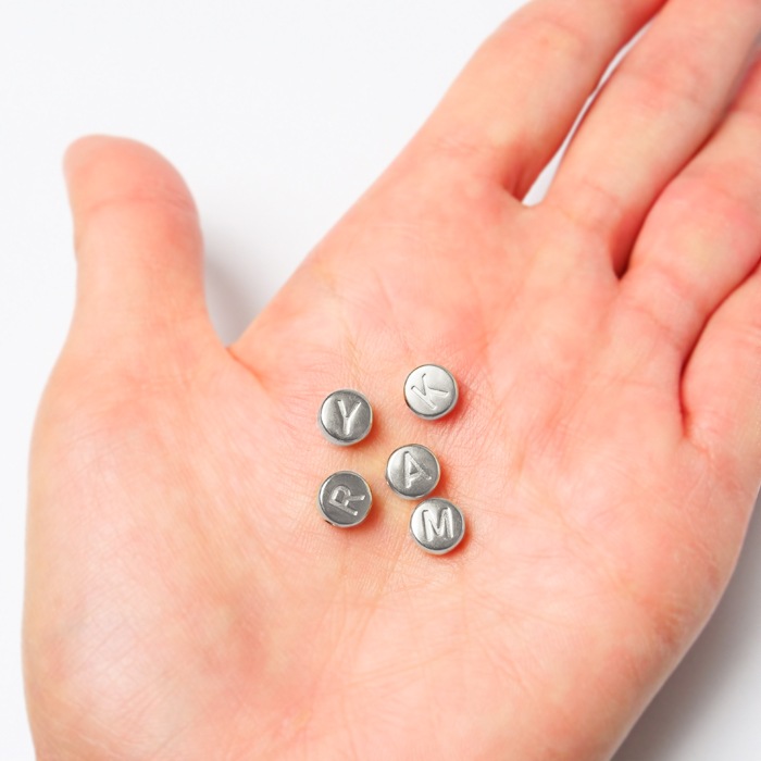 こちらは ステンレス製 アルファベットビーズ【シルバー A~N 】の商品ページです。