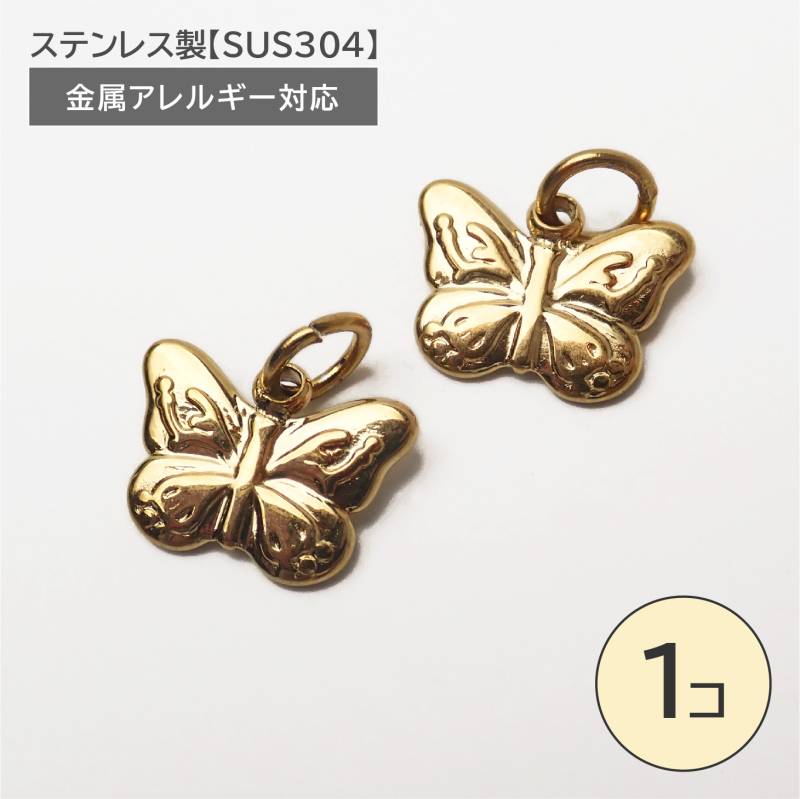 ステンレス製【SUS304】 金属アレルギー対応 ゴールド 蝶 チャーム デザインパーツ 丸カン付き