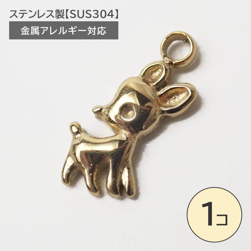 ステンレス製【SUS304】 金属アレルギー対応 ゴールド バンビ チャーム カン付き 可愛い 小鹿