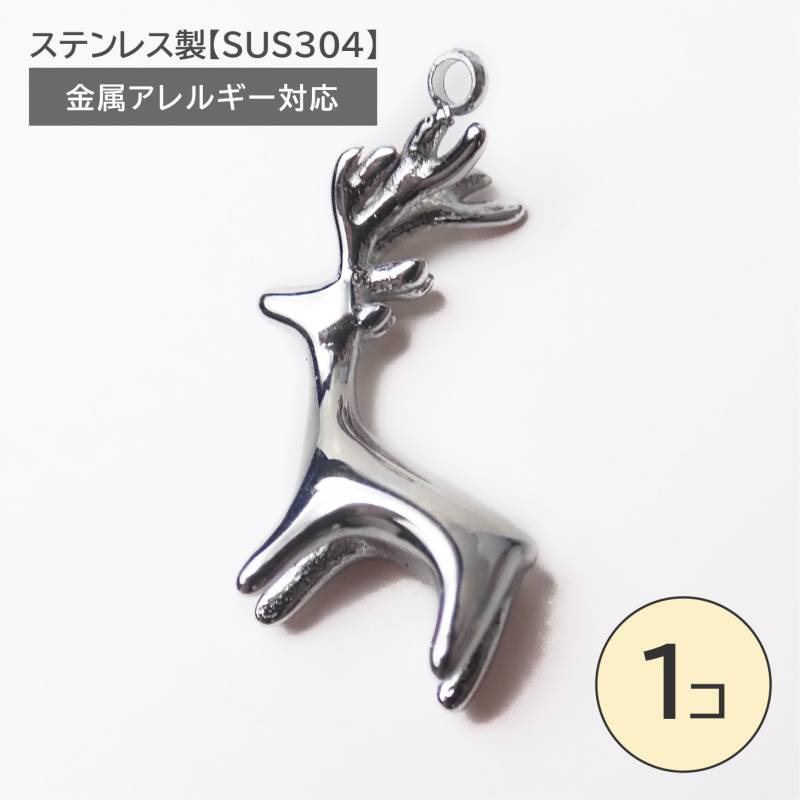 ステンレス製【SUS304】 金属アレルギー対応 鹿 チャーム シルバー ハンドメイド カン付き