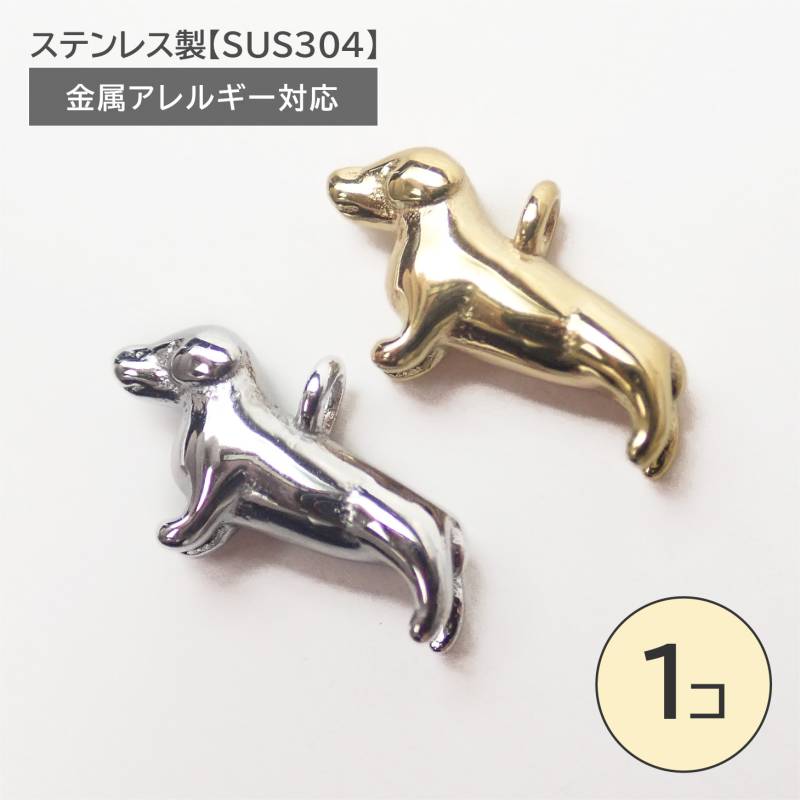 ステンレス製【SUS304】 金属アレルギー対応 ゴールド シルバー ダックスフント チャーム 犬 カン付き