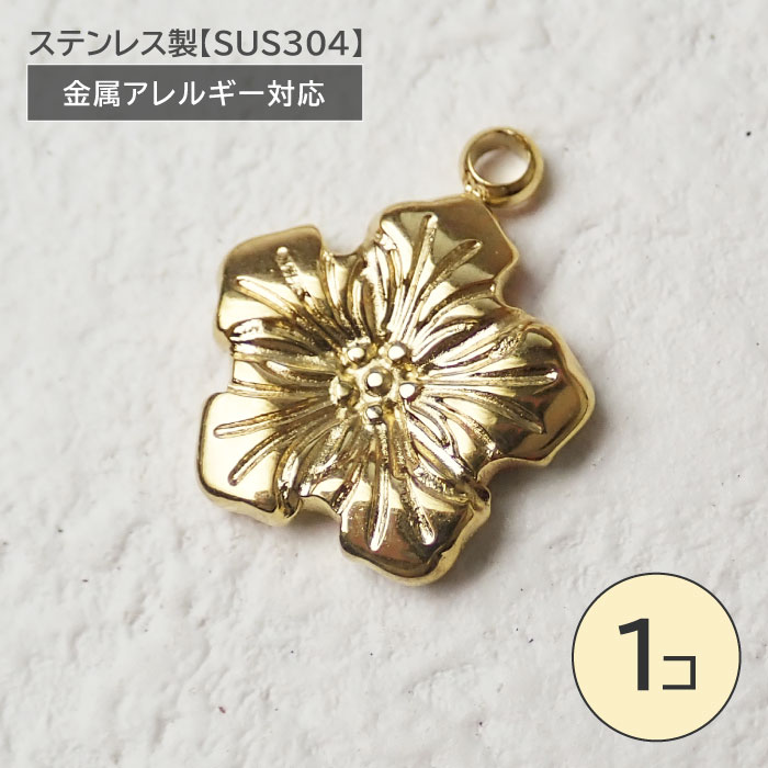 ステンレス製【SUS304】 金属アレルギー対応 ゴールド ハイビスカス チャーム カン付き 花