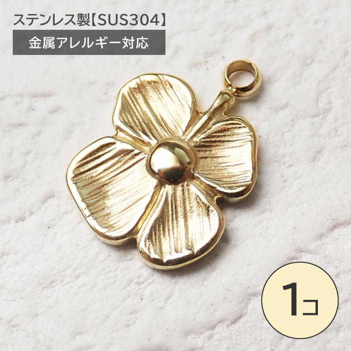 ステンレス製【SUS304】 金属アレルギー対応 ゴールド 花 チャーム 可憐 カン付きフラワー