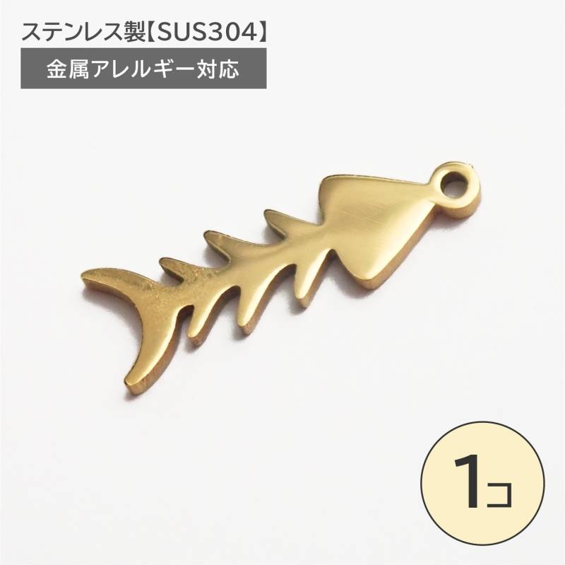 ステンレス製【SUS304】 金属アレルギー対応 ゴールド 魚の骨 魚 骨 チャーム パーツ カン付き