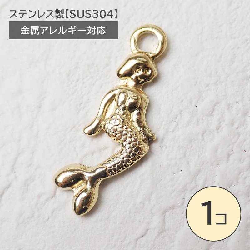ステンレス製【SUS304】 金属アレルギー対応 人魚 チャーム ゴールド 海 マーメイド パーツ カン付き